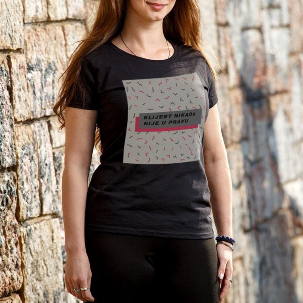 Zaboravite na nervozu i prepiranje sa klijentima , jer “klijent nikada nije u pravu!” Koliko ste puta imali situaciju da odradite posao i ponosni predstavite finalni produkt rada klijentu, koji se predomisli, jer ipak ne želi ono što je provobitno tražio, ili jednostavno, smatra da bolje zna vaš posao? Upravo zato je i nastala ova fenomenalna majica. „Klijent nikada nije u pravu“ je majica koja je tu da podseti vas i klijente „ko je šef“. Dostupne su u crnoj i beloj boji, svim veličinama i muškom i ženskom modelu. Belu majicu možete poručiti OVDE, za 1400 rsd, a crnu majicu možete poručiti OVDE, po ceni od 1500 rsd. Ili poručite telefonom na broj 011/4420-502.