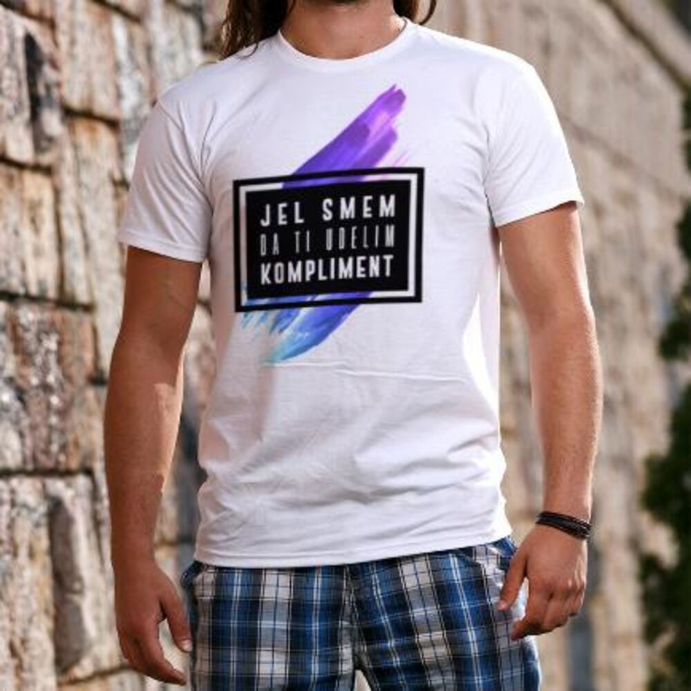 Nov zakon o udvaranju je stupio nedavno na snagu. Kreativni ljudi rešili su da se našale na račun istog originalnim natpisom na majici. Majica sa natpisom Jel smem da ti udelim kompliment je pravi hit! Ova majica će preneti poruku okolini, bez reči. Majice su dostupne u svim veličinama, muškoj i ženskoj varijanti i u dve boje - crnoj i beloj. Ukoliko je vaš favorit bela majica, OVDE je možete poručiti za 1400 rsd, a ukoliko želite crnu majicu, OVDE može postati vaša za 1500 rsd. Ili poručite telefonom na broj 011/4420-502.