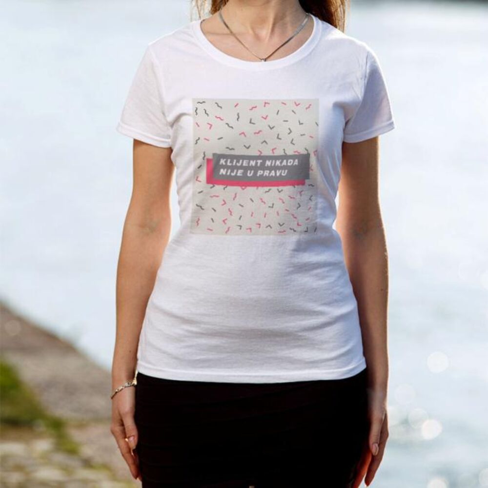 Zaboravite na nervozu i prepiranje sa klijentima , jer “klijent nikada nije u pravu!” Koliko ste puta imali situaciju da odradite posao i ponosni predstavite finalni produkt rada klijentu, koji se predomisli, jer ipak ne želi ono što je provobitno tražio, ili jednostavno, smatra da bolje zna vaš posao? Upravo zato je i nastala ova fenomenalna majica. „Klijent nikada nije u pravu“ je majica koja je tu da podseti vas i klijente „ko je šef“. Dostupne su u crnoj i beloj boji, svim veličinama i muškom i ženskom modelu. Belu majicu možete poručiti OVDE, za 1400 rsd, a crnu majicu možete poručiti OVDE, po ceni od 1500 rsd. Ili poručite telefonom na broj 011/4420-502.