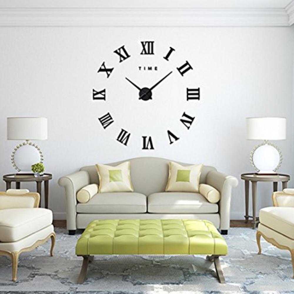 3D samolepljivi zidni sat dimenzija 1m X 1m, elegantnog izgleda sa crnim rimskim brojevima i kazaljkom od crnog aliminijuma savršen je za uređenje svake prostorije u vašem domu. Može da se lepi na sve podloge, a pri odlepljivanju ostavlja minimalne tragove na zidu.