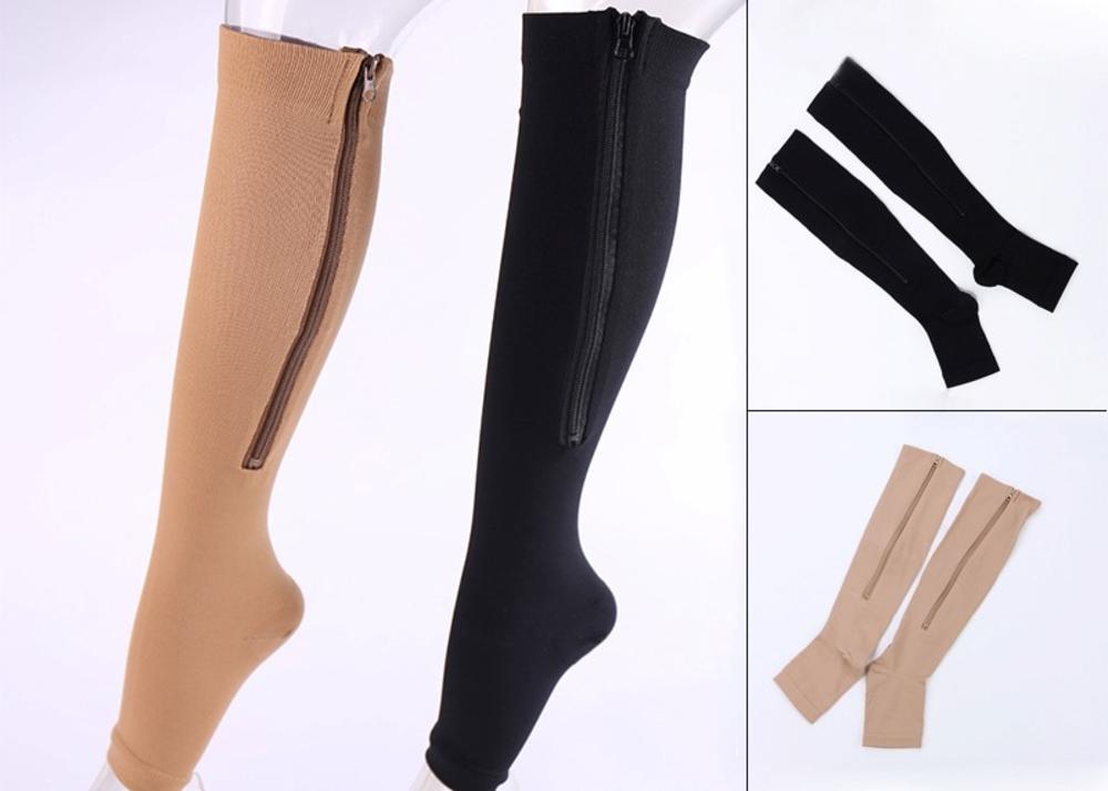Kompresivne čarape sa rajsferšlusom – čarape koje sprečavaju da vam listovi otiču i zadaju vam tegobe. Napravljene su od posebnog materijala koji propušta vazduh, podstiče cirkulaciju i ima kompresivni efekat tako da smanjuje otok i bolove u nogama.