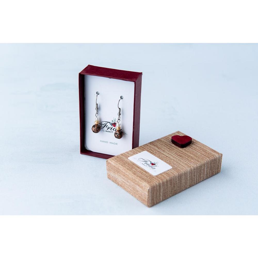 Frida Stena minđuše su u zlatno braon boji, sa belom bisernom kuglicom na vrhu i zlatnom kuglicom ispod nje. Na kraju je braon kamenčić sa crnim reljefom. Uprakovane su u kutijicu koja prati nijanse modela, pa mogu biti fantastičan poklon za vašu dragu damu. Naručite ih OVDE ili pozivom na broj telefona 011/442 0502 ili 064/866 00 55 svakog radnog dana od 9 do 17h, po ceni od 490 rsd.
