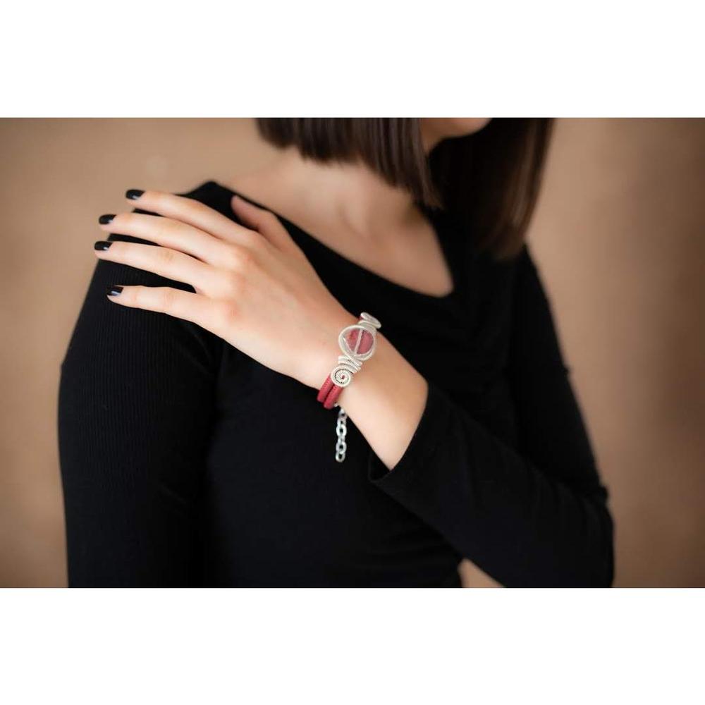 Bordo narukvica sa providnim kamenom je ručno rađena narukvica od kože i pamučnog kanapa, posrebrene žice i finih kamenčića. Može da se podešava i prati veličinu ručnog zgloba. Slaže se uz svaki outfit, poslovni, večernji, šik, praznični… Pored ovakvog komada nakita na Vama nijedan drugi Vam neće biti potreban, Naručite narukvicu OVDE ili pozivom na broj telefona 011/442 0502 ili 064/866 00 55 svakog radnog dana od 9 do 17h, po ceni od 1.099 rsd.
