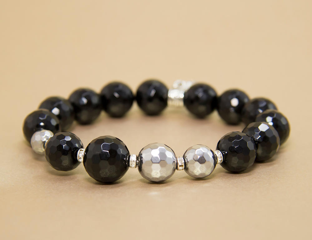 Narukvica Elegant Black Night je oplemenja Swarovski kristalom i sačinjena od crnog oniksa i hematita. Ovo poludrago kamenje podstiče snagu volje i daje duhovnu snagu. OVDE je možete poručiti po ceni od 1.990 rsd ili pozivom na broj 011/4420-502.