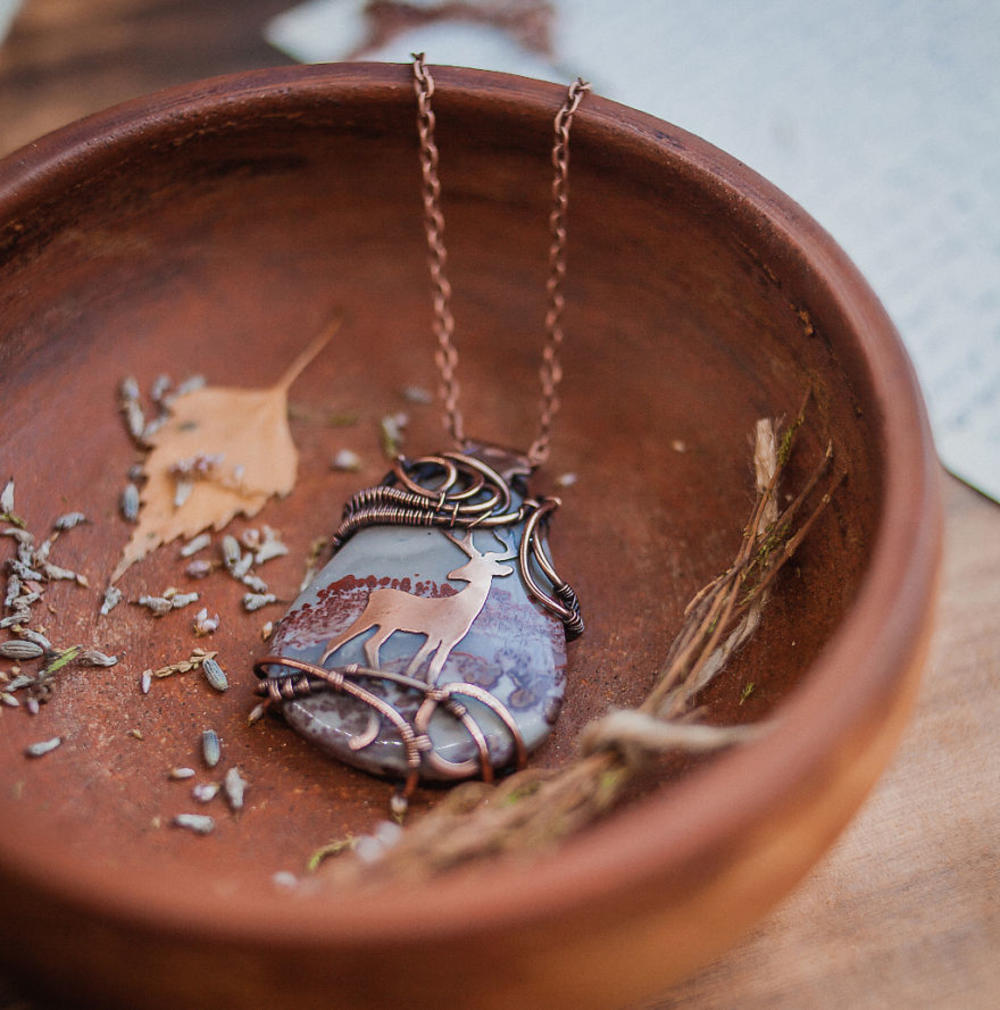 Nakit najčešće pravi od bakra jer je on topao i lep metal, ne tamni i lako ga je prekriti lakom, a osim toga on ne izaziva alergije. Oksana živi u pitoresknom gradu okruženom živopisnim šumama pa inspiraciju crpi direktno iz same prirode.
