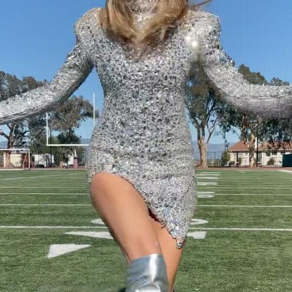 Supermodel iz Nemačke je sve prisutne bacila u drugi plan kada se pojavila u uskoj mini haljini dugih rukava od šljokica i kristala u srebrnoj boji, koju je iskombinovala sa špicastim metalik sivim čizmama na visoku potpeticu iznad kolena. Pošto je dan bio sunčan, Klum je imala naočare koja su takođe bile u srebrnim tonovima, dok je plavu kosu samo isfenirala. Kako ne bi mnogo šetala u ovakvom izdanju, Hajdi se vozila kolima za golf.