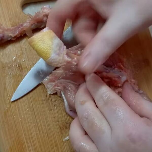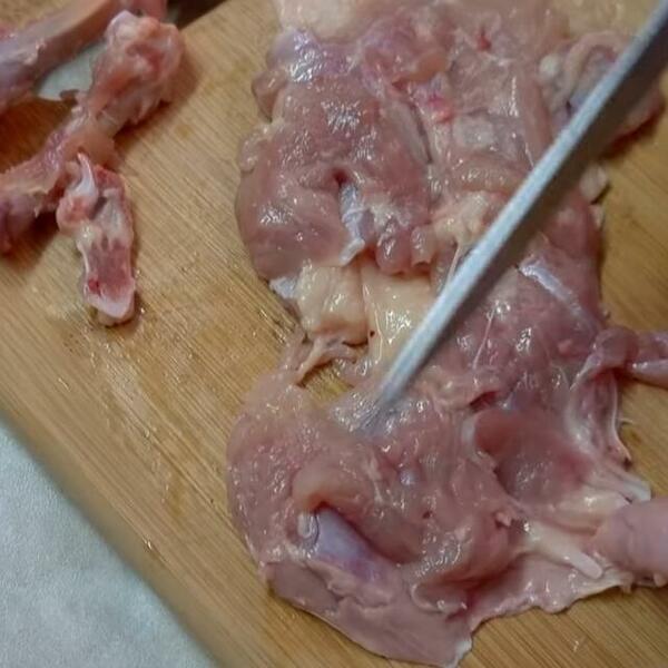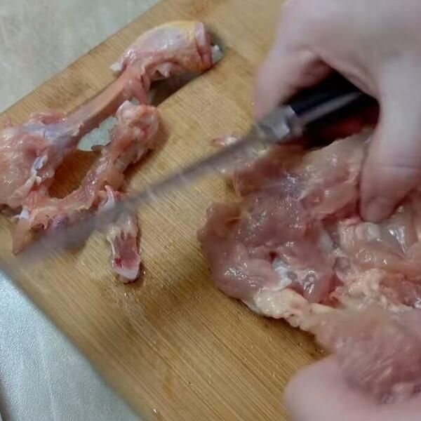 Isecite mesto od kosti praveći nekoliko kratkih seckanja svojim nožem. Kada se meso oslobodi, koristite svoje prste kako biste ga izvadili od kosti.