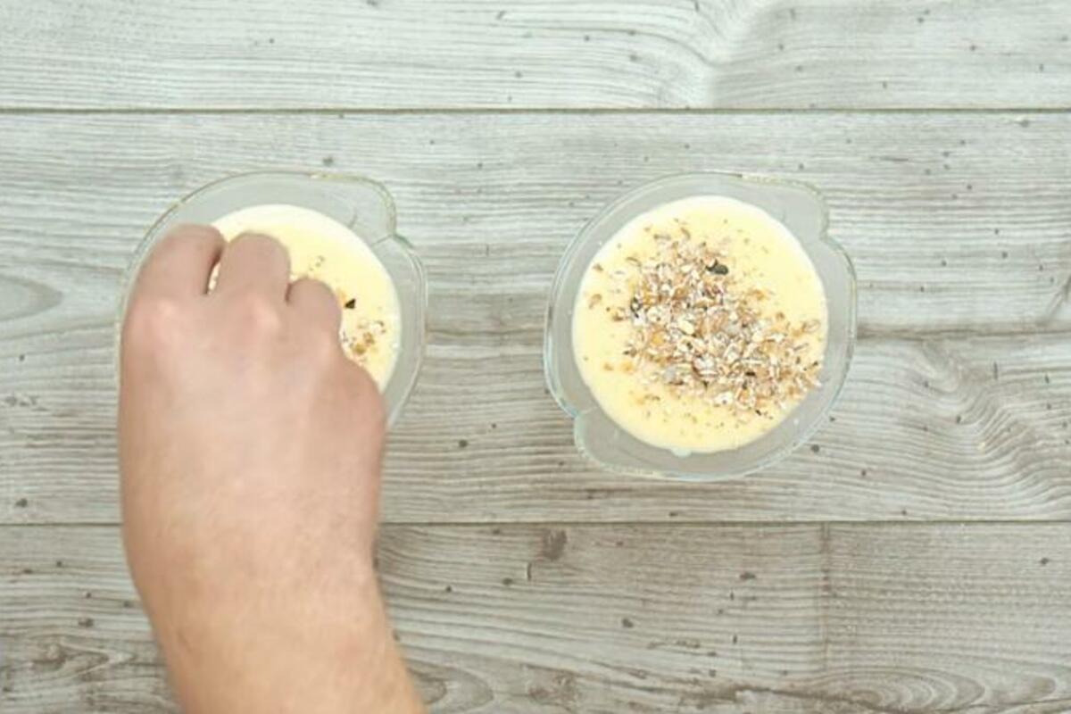 3. Sipati gotov desert u staklene posude i ostaviti da se ohladi! Po želji dekorisati kokosovim brašnom, cimetom, orasima...