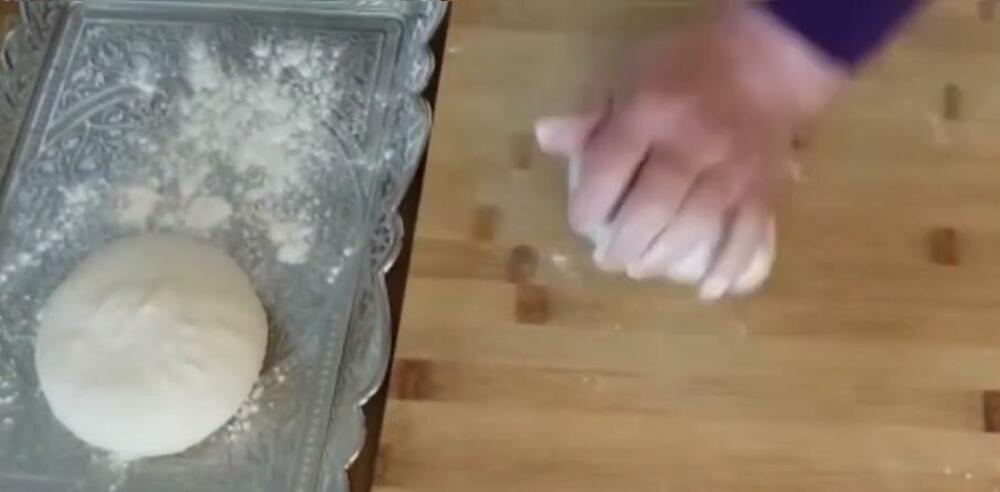 Tepsiju dimenzija 30x20 premažite uljem i pospite brašnom, pa ravnomerno izlijte smesu u nju