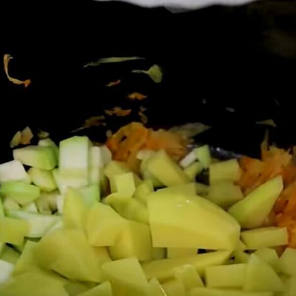 Zagrejte maslinovo ulje u velikoj šerpi, pa dodajte sitno naseckan luk i dinstajte dok ne zastakli. Dodajte praziluk i pržite na laganoj vatri dok ne omekša, a zatim dodajte vodu, bujon, paradajz, šargarepu, celer i tikvice isečene na kockice. Kafriol skuvajte na pari, pa ga iseckajte i dodajte u šerpu. Kad čorba proključa, smanjite vatru, začinite po ukusu i kuvajte još 10 minuta.