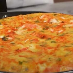 Sve dobro izmešati i podeliti smesu na dva dela. Jedan deo smese sipajte u podmazan i malo pobrašnjen pleh i pecite u zagrejanoj rerni na 180°C tačno 10 minuta.