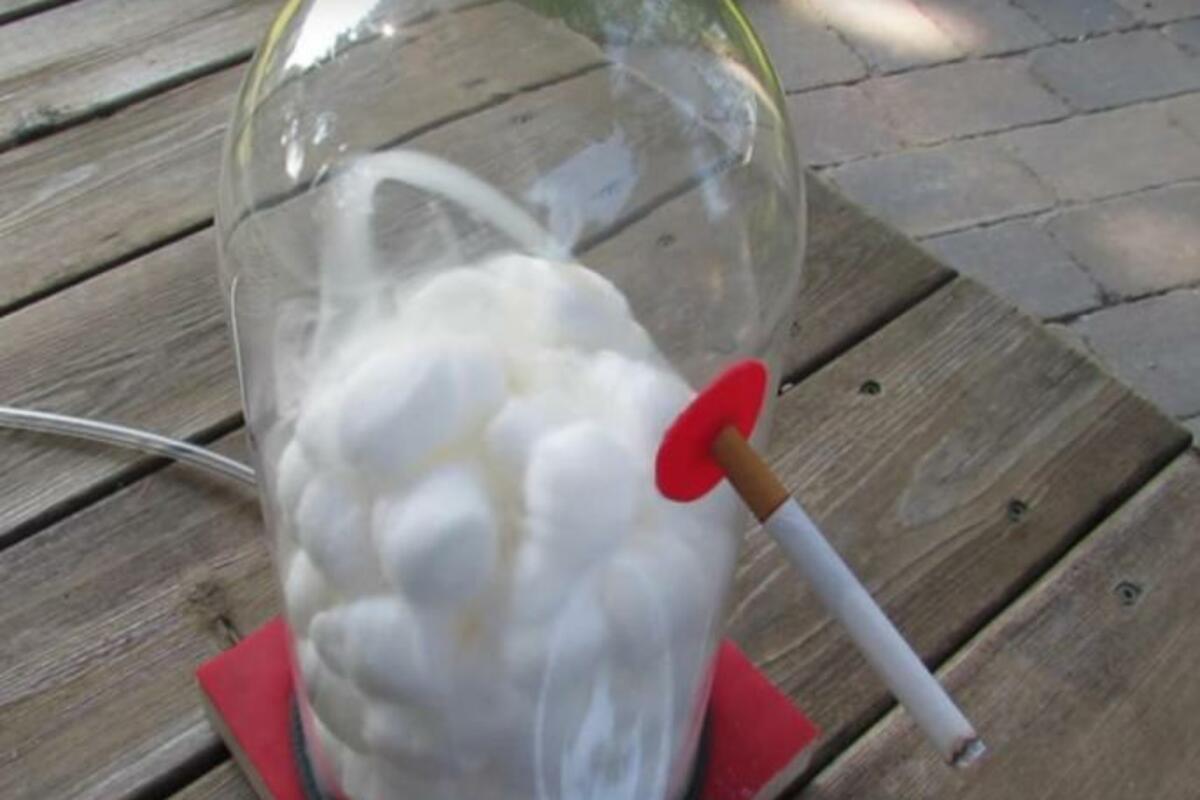 Na Jutjubu se pojavio video eksperimenta koji je napravio Kris Notap, a koristio je jednu kutiju cigareta, pamuk i pumpu koja je simulirala disajni sistem.