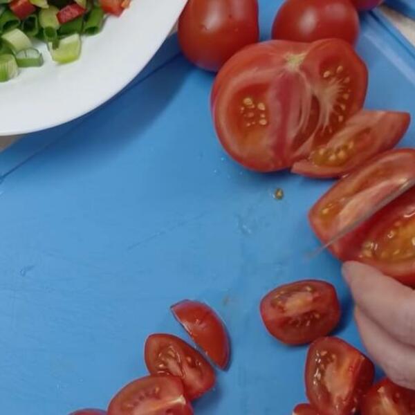 Da biste pripremili menemen, prvo ćete iseckati sveže povrće i propržiti ih u tiganju sa malo maslinovog ulja.