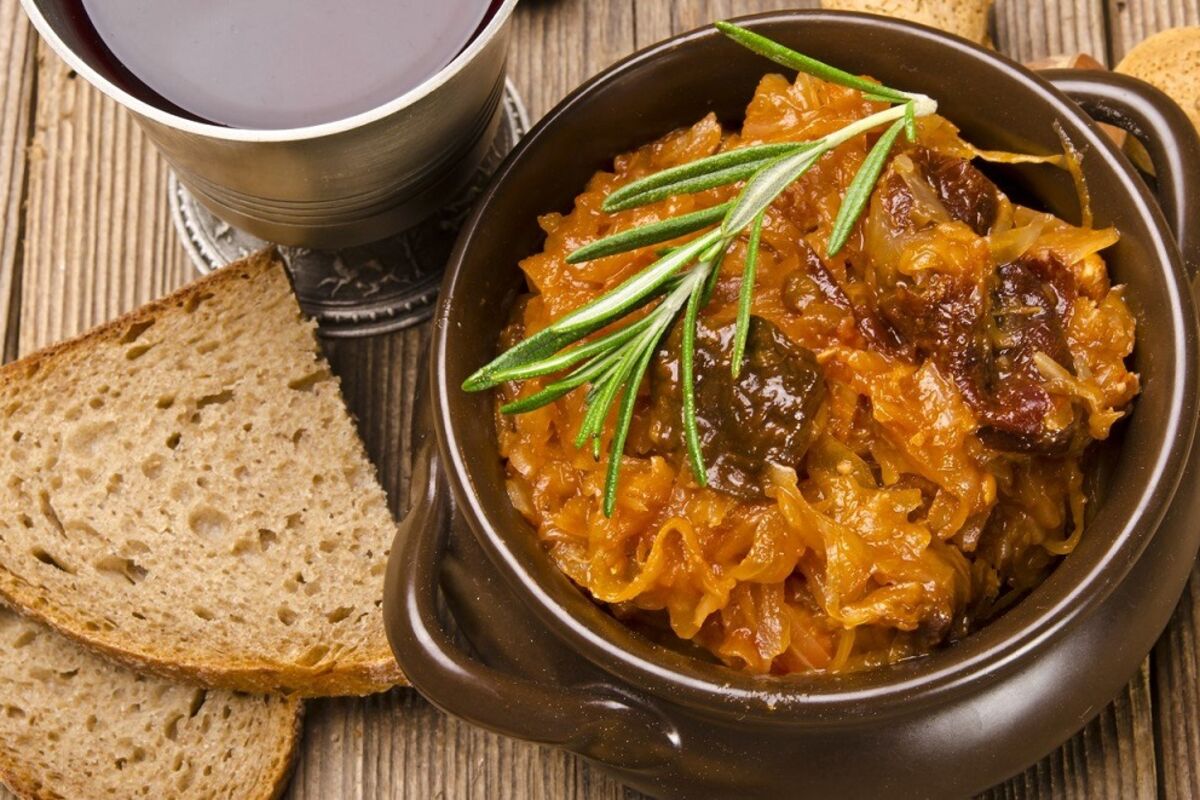 glavica kiselog kupusa (do 2 kg), 1 glavica crnog luka, 150 ml masti slanina, suvo meso, ćuretina (mogu i kremenadle, piletina) lorber mleveni biber