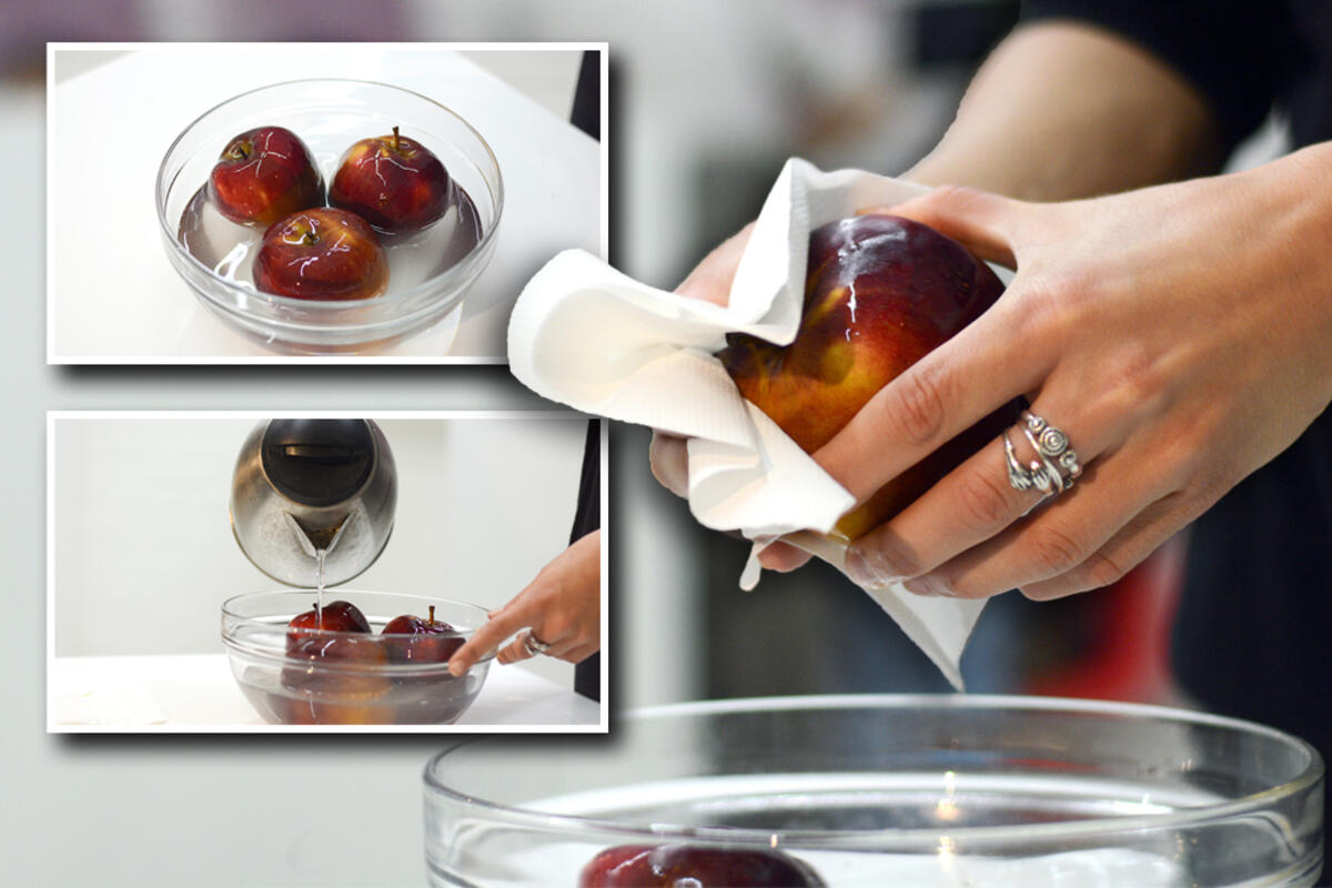 Ako su jabuke prekrivene voskom, on će početi spadati sa njih kada ih stavite u posudu sa vrelom vodom.