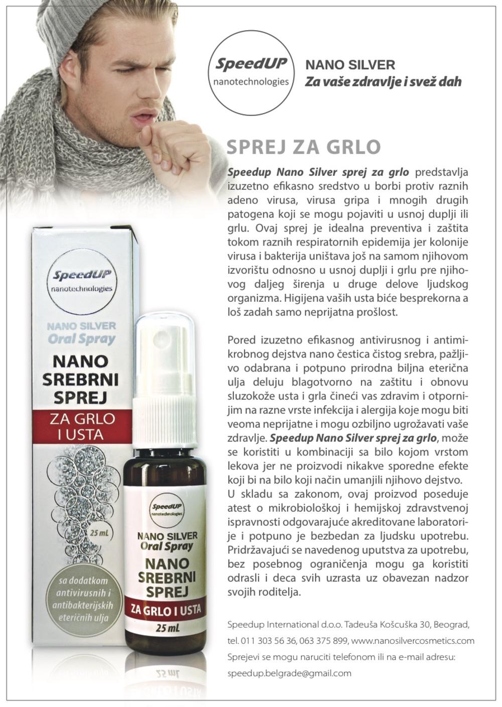 SpeedUp nano silver sprej za grlo možete poručiti OVDE po ceni od samo 900 rsd ili pozivom na broj telefona 011/442-0502 svakog radnog dana.
