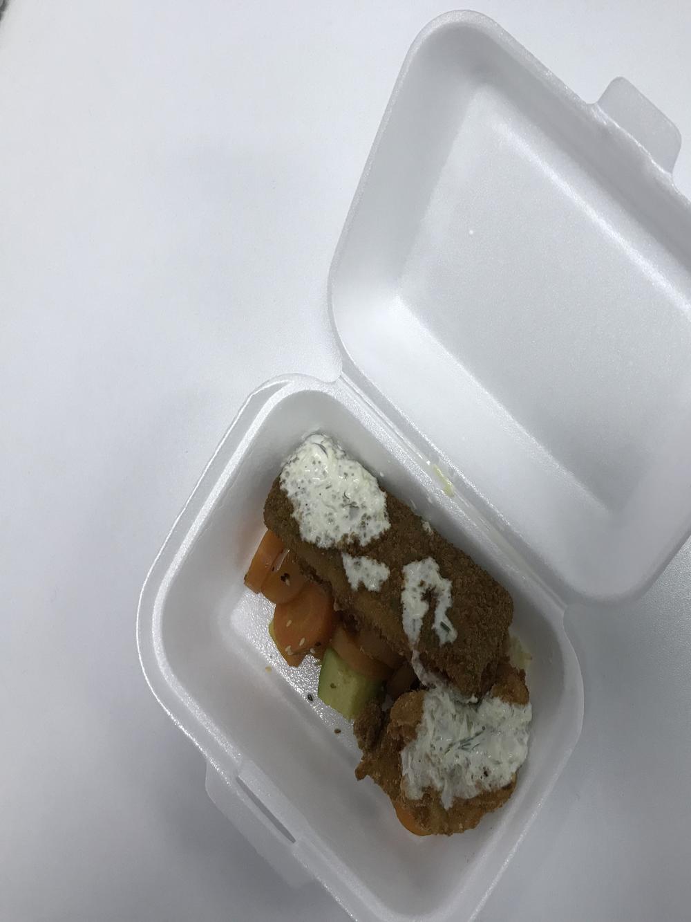 Da se vratim sad svom danu. Pola dva je i creva mi pevaju. Ali ne od sreće već zavijaju i traže unos bilo kakve hrane. No, izbor mi je danas prilično sužen. U obližnjoj radnji u koju idemo svaki dan po kuvanu hranu, danas je na meniju bilo sledeće - pohovani oslić, grilovano povrće, pire, pirinač sa povrćem, pohovani karfiol i još mnogo mesnih poslastica koje sam se trudila da ne gledam.