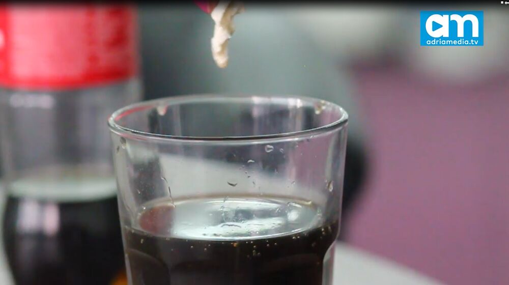 Nas je baš zanimalo šta će se desiti ako jednu upotrebljenu žvaku, umesto da je zalepimo negde ili bacimo u smeće, stavimo u čašu Koka- Kole.