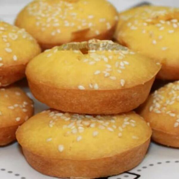 Izrendati tikvicu i kačkavalj. Sjediniti pa dodati ulje, obe vrste brašna pomešanim sa praškom za pecivo. Sjediniti smesu da bude bez grudvica. Ako je potrebno dodati vrlo malo mineralne vode (uglavnom ne treba jer tikvica pusti svoj sok). Ovom smesom puniti korpice za mafine ,posuti susamom i peći na 200 C oko 15 minuta.