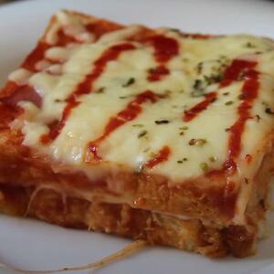 Tost hleb malo ispecite u tosteru pa ga iseckajte na kockice, dodajte salatu, malo piletine i preliva, pa sve izmešajte. Prebacite sve u jednu činiju, pa na vrhu poređajte ostatak piletine, isečen paradajz i isprženu pančetu, a na kraju pospite parmezan.