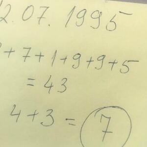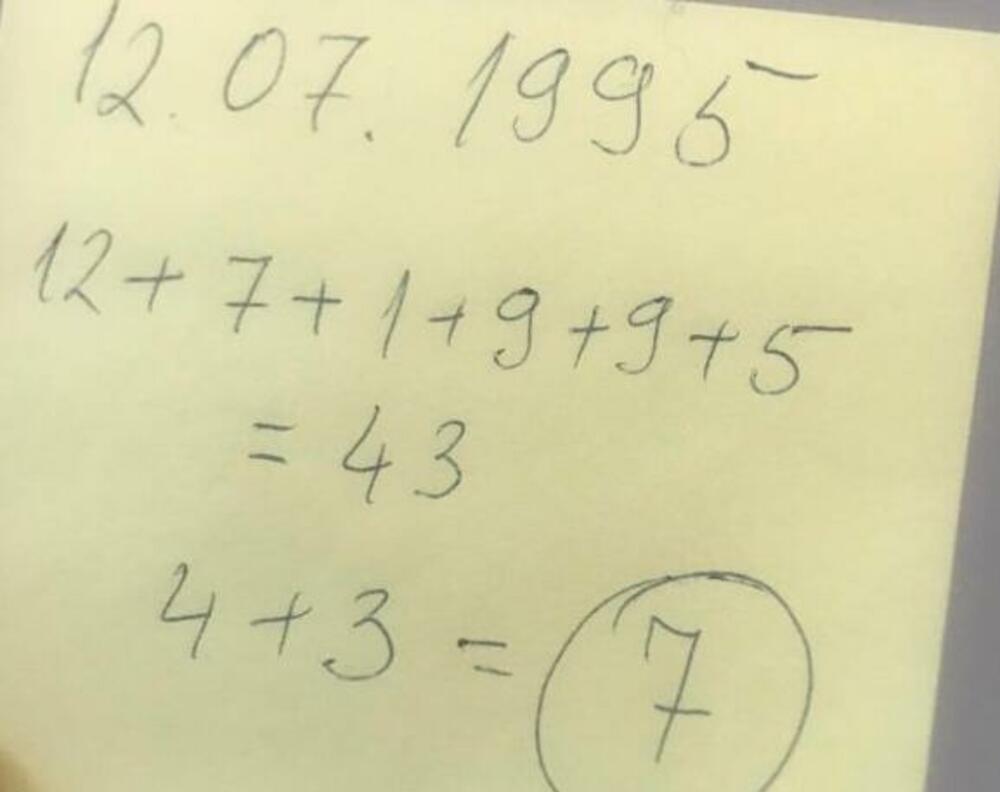 Na primer - Recimo da vam je rođendan 24. februar 1995. i petak je. Sabirate na sledeći način 2+4+2+1+9+9+5 = 32, zatim taj broj saberite sa rednim brojem dana na koji ste rođeni (petak - 5), 32 + 5 = 10, pa svedite na jednocifren broj 1 + 0 = 1.