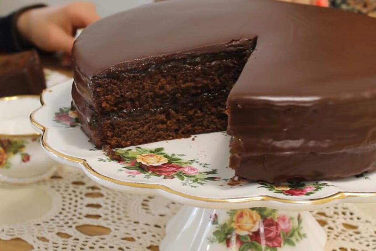 Čokoladni biskvit sa mlevenim orasima, sloj pekmeza od kajsija, opet biskvit, pekmez i odozgo čokoladna ganache glazura – to vam je ukratko ovaj Sacher kolač