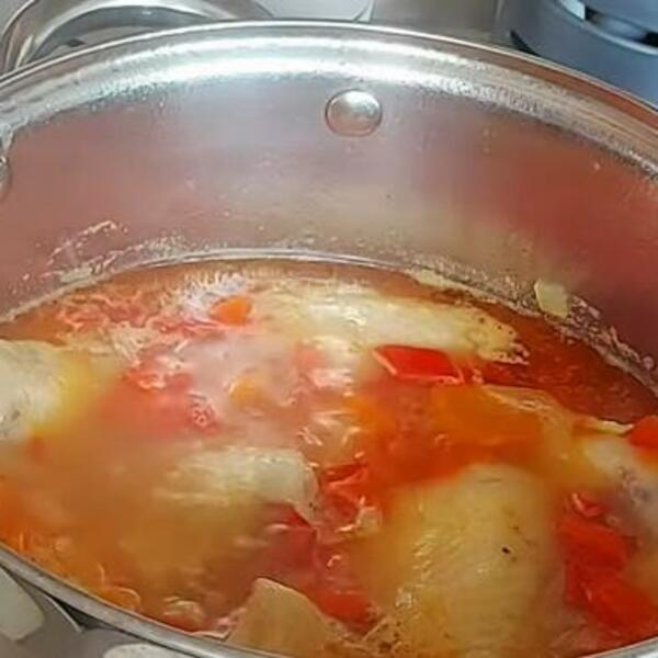 Na ulju ispržitiu seckan crni luk, paprika i šargarepu i izdinstati na tihoj vatri, Dodati pileća krilca, seckan na kockice. Dodati ml. papriku slatku, može malo tucana ljuta, malo suvog začina, bibera i preliti vodom. Ostaviti da kuva na laganoj vatri oko sat vremena.