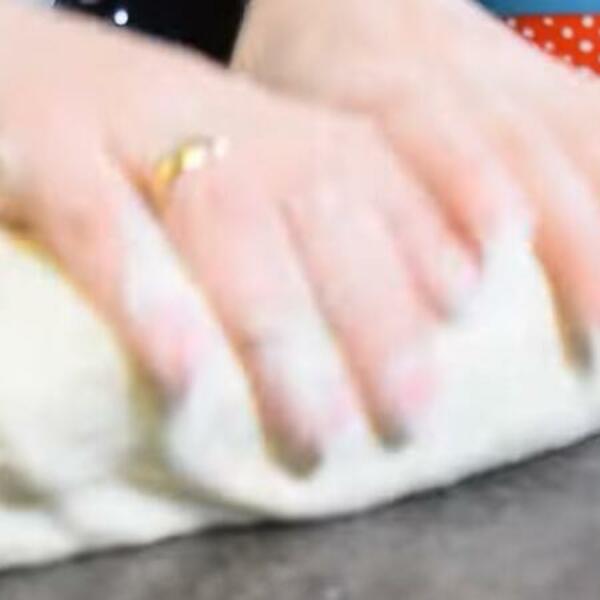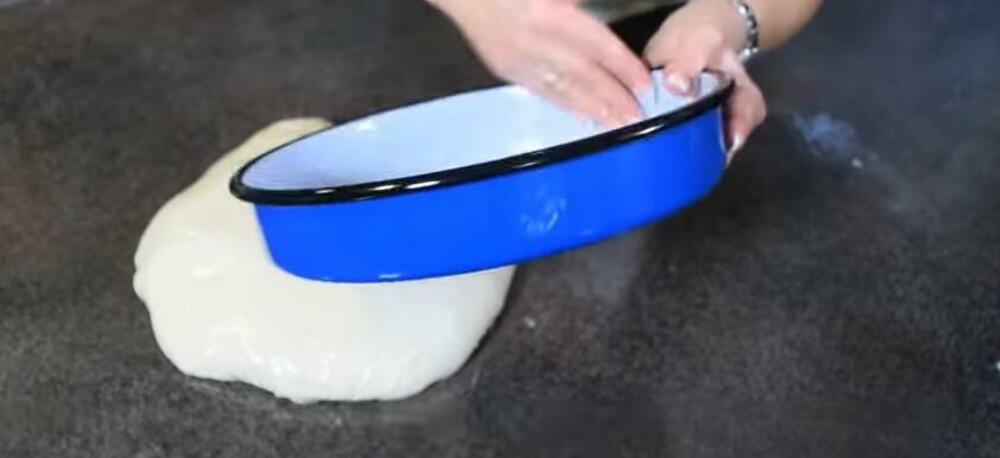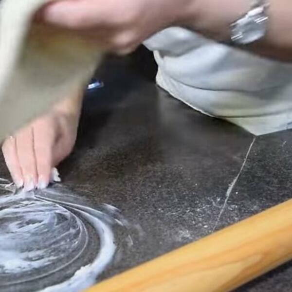 Pospite radnu površinu brašnom i odvojite jednu lopticu testa i počnite da razvijate oklagijom i rukama. Ponovite postupak za onoliko puta koliko kuglica testa imate, u ovom slučaju 6.
