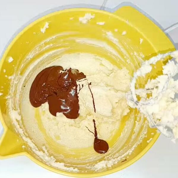 U 230 gr putera (ostavite na sobnoj temperaturi) dodajte 10 kašičica šećera, 100 gr istopljene čokolade i 1 vanilin secer. Ja sam dodala 2 kašike ruma.