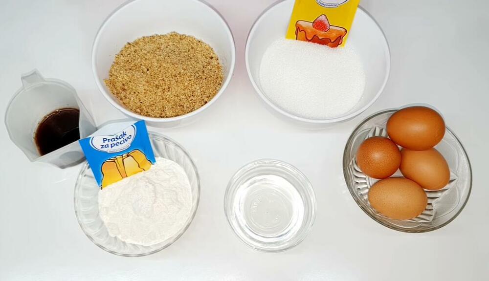 Nakon toga dodajte 5 kašika hladne kafe, 100 gr oraha, 5 kašika brašna, 3 kašike ulja, 1 prašak za pecivo u smesu od belanaca. Stavite u rernu zagrejanu na 200 C jedno 20-25 min.