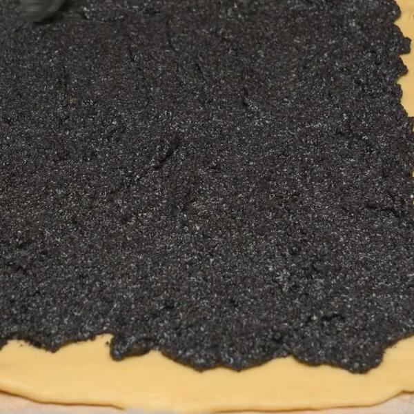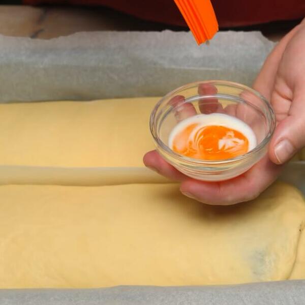 U pleh staviti papir za pečenje sa napravljenom pregradom izmedju dve štrudle, kako se ne bi zalepile.