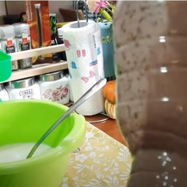 Od ove smese odvojite jednu kutlaču sa strane, dodajte 1 kašiku kakaoa i 50 g otopljene čokolade,umutite da se masa izjednači.