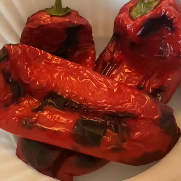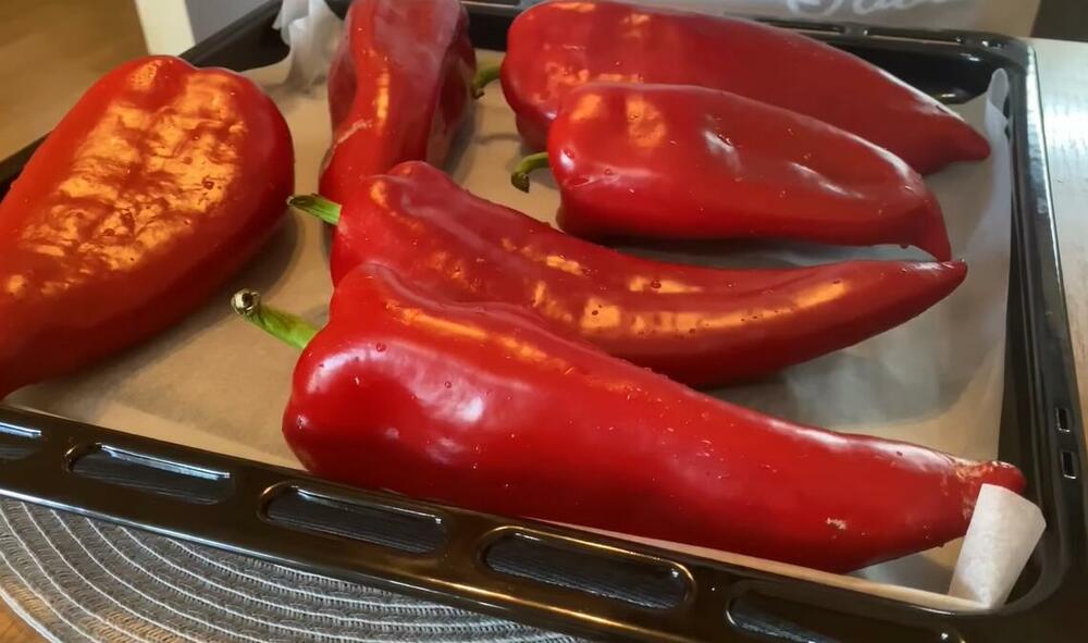 - Paprike oprati, obrisati, podkratiti peteljke i peći na ploči šporeta ili na roštilju dok svuda ne dobiju smeđu boju.