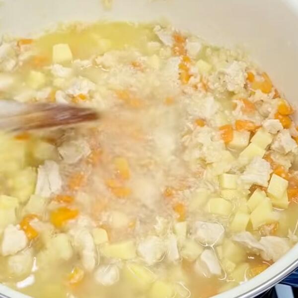 Luk iseckati što sitnije pa na malo ulja dinstati da bude staklast. Zatim dodati šargarepu sitno seckanu i dinstati još malo. Na kraju dodati meso iseckano na sitne kockice, posoliti i dinstati dok meso ne omekša. Naliti toplom vodom i zgusnuti čorbu brašnom.