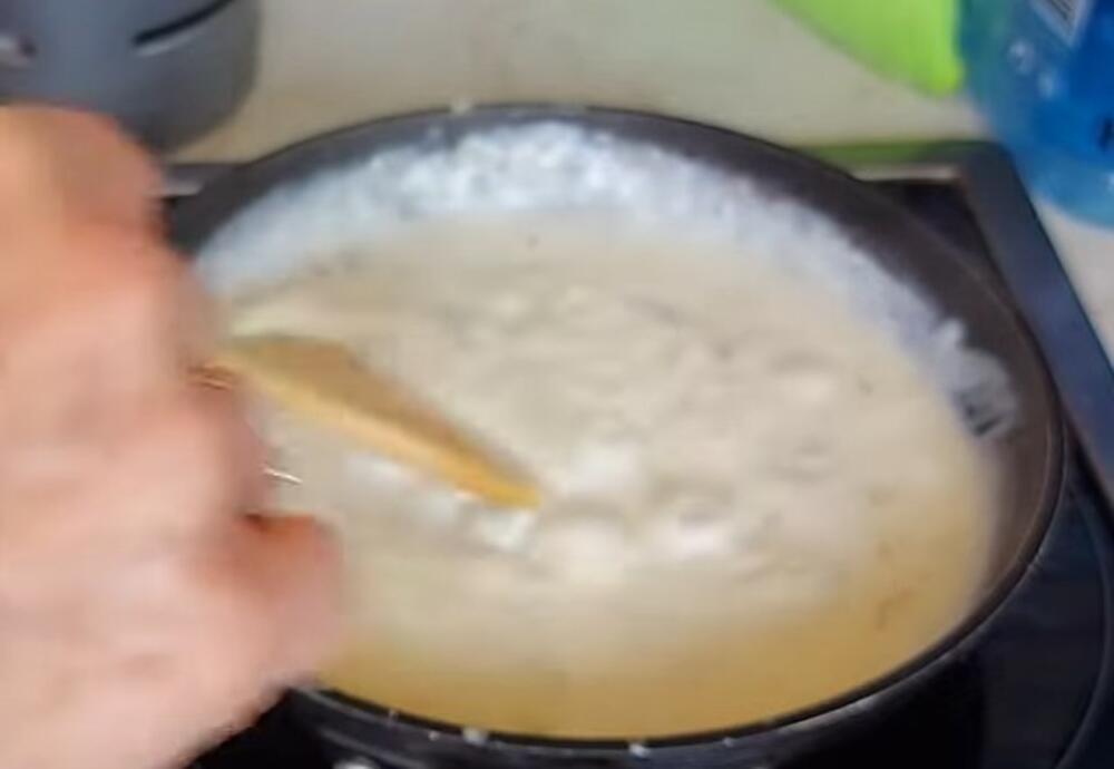 Dodati mleko i malo vode. Kad prokuva, skloniti sa šporeta. Sipati testeninu, pa preliti sa bešamel sosom.