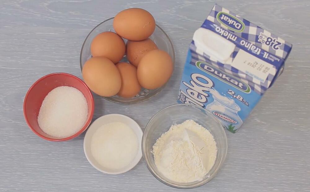 U širu i veću šerpu sipajte mleko, pa dodajte vanilin šećer i stavite da provri. Odvojite belanca i žumanca, pa u belanca dodajte kašiku šećera i umutite u čvrst šne. Kada okrenete naopako šne bi trebalo da ostane u posudi.