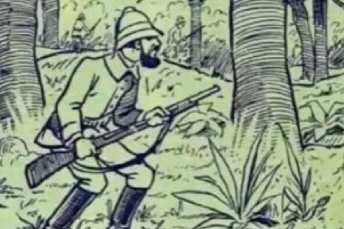 Ali konačno, neko je ugledao slona koji je sve vreme vrebao u prvom planu sa dva velika drveta koja su mu služila kao noge i manje drvo kao deblo.