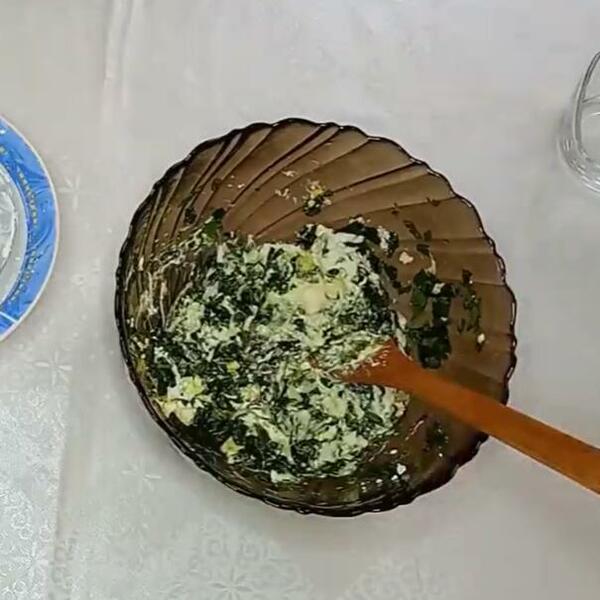 Sirov krompir krupno narendajte, a spanać poparite i krupno naseckajte. Pomešajte krompir sa spanaćem, pa dodajte sitno iseckan beli luk i začinite solju i biberom.