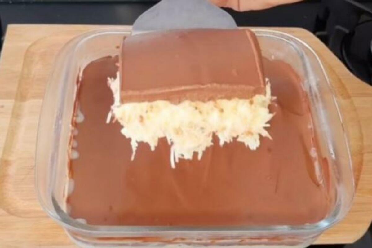 U tepsiju sipajte kokos, pa prelijte kondenzovanim mlekom. Dobro promešajte i stavite u frižider. Čokoladu istopite sa slatkom pavlakom i prelijte preko. Stavite u frižider nekih 3 sata.