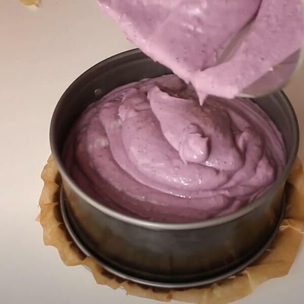 Za mus: pomešajte želatin sa vodom i ostavite da nabubri. U blenderu ispasirajte borovnice. Polovinu slatke pavlake pomešajte i ugrejte sa belom čokoladom. Sklonite sa ringle čim se istopi i sjedini. U smesu dodajte nabubreli želatin, kada se i on istopi, dodajte ispasirane borovnice.
