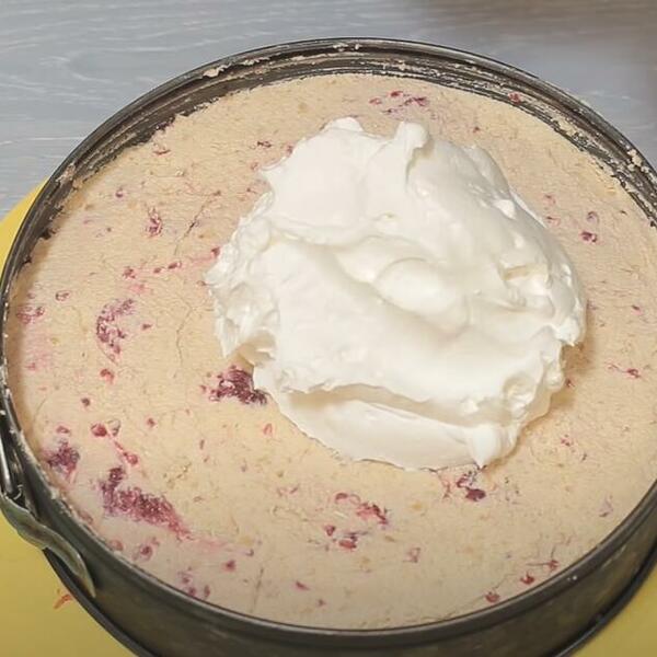 - Na kraju umešati maline koje moraju biti smrznute jer se smesa meša a potom stavlja u kalup prečnika 24cm.