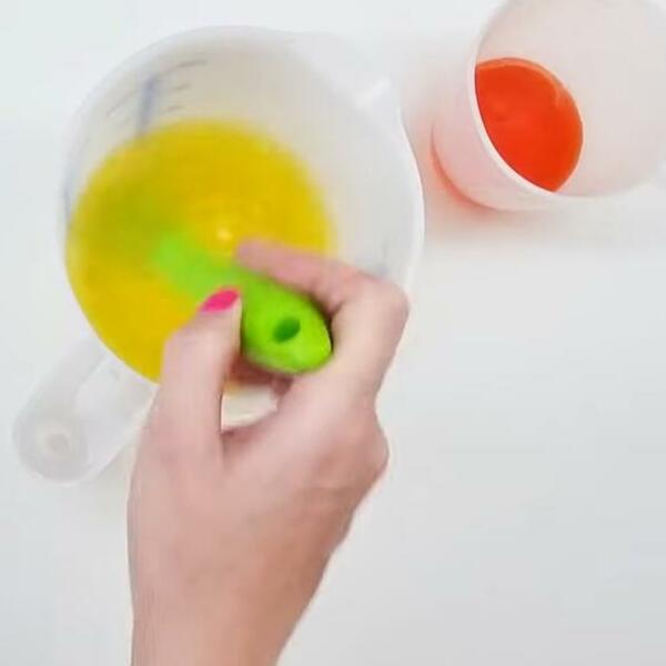 4. Mokre sastojke sipajte u suve i mešajte silikonskom lopaticom dok se ne formira glatka smesa bez grudvica.