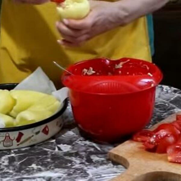 Napunjenu papriku dozgo zatvoriti kolutovima paradajza