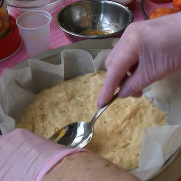 Preko kajsija sipati drugu polovinu pudinga pa ostatak testa