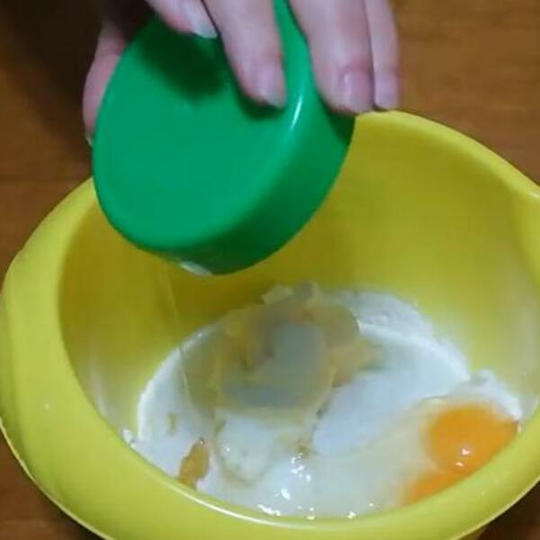 Pecite u zagrejanoj rerni na 200 stepeni, dok lepo ne porumeni. Ohlađeni kolač pospite šećerom u prahu, pomešanim sa vanilin šećerom i isecite na kocke.