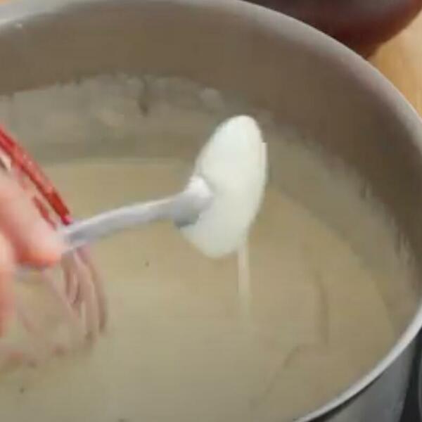 A šta je potrebno da uradite? Jako je važno da u šerpu sa brašnom postepeno sipate zagrejano mleko koje nije proključalo. Na ovaj način će bešamel postati kao najfiniji krem.