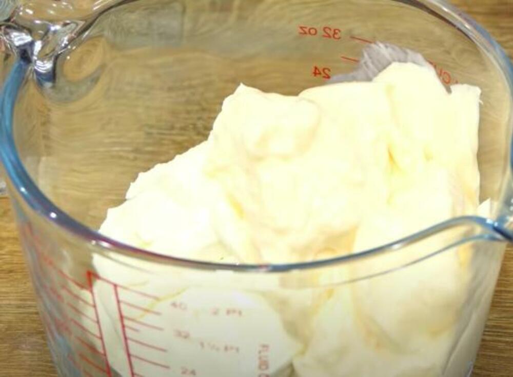 Krompir i jaja skuvajte, pa sitno iseckajte, kao i kiseli krastavac. Pomešajte krem sir sa jogurtom, majonezom, senfom, mirođijom, limunovim sokom i posolite. U obruč prečnika 16 cm stavite krompir, zatim sos, pa kuvana jaja, kisele krastavce, preostali krompir i kuvana jaja. Prelijte preostalim sosom. Ostavite u frižideru 4 sata. Kada izvadite salatu iz frižidera, ukrasite je po želji.