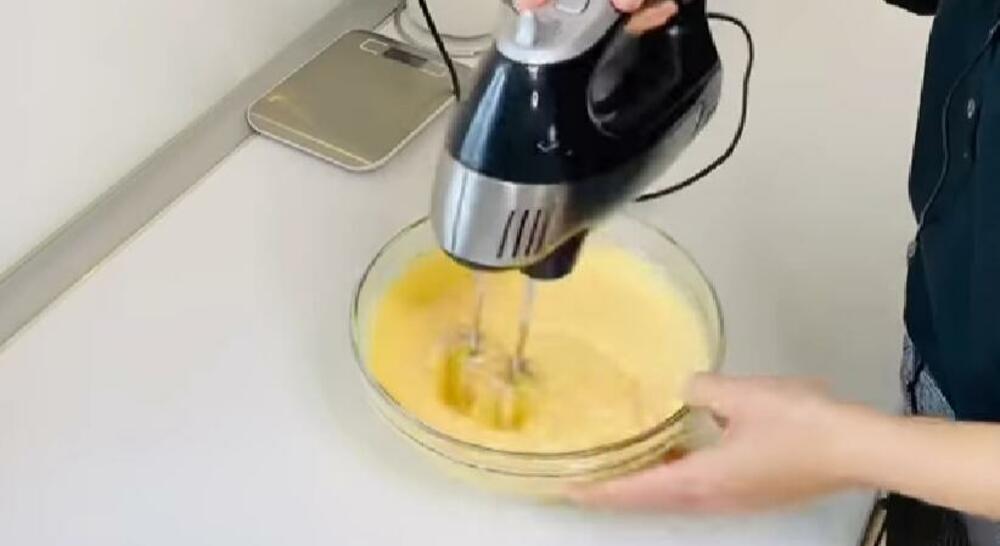 Ulupajte 3 belanca u čvrst šam, pa dodajte 3 kašike šećera (jednu po jednu) i miksajte dok se ne rastvori.