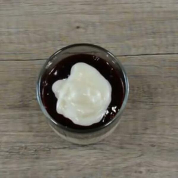 Dok se hladi čokoladna smesa, umutiti slatku pavlaku, ali ne prečvrsto. Sjediniti sa čokoladom. U čašu za služenje sipati po želji, malo sos od borovnice i mus, redosled je po vašem ahođenju... Možete ostaviti da se voćni sos potpuno ohladi, ili ko ja, sipati mlak koji će se pomešati sa belim delom dajući mermerni efekat.