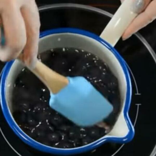 Prvo napraviti sos od borovnica, da se ohladi. Oprano voće pošećeriti i kratko prokuvati, da se voće raspadne. Odložiti. Umutiti jaje kratko sa mlekom i na tihoj vatri zagrejavati. Svo vreme mešati. Kada bude vrelo, ubaciti čokoladu i mešati da se otopi.
